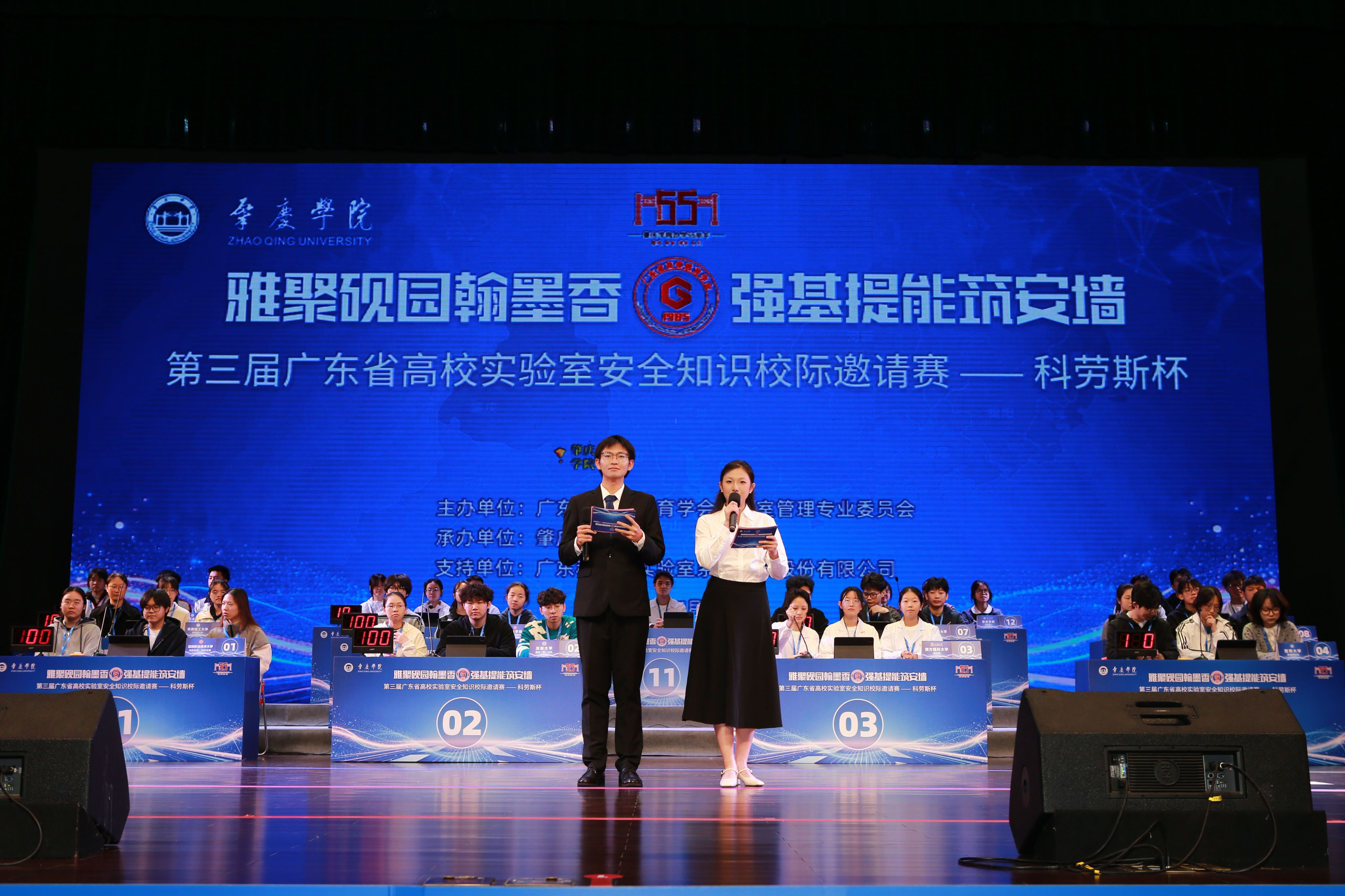 【本网讯】2025年11月20日-21日,第三届广东省高校实验室安全知识校际邀请赛(科劳斯杯)在我校肇庆艺术中心顺利举行。本次比赛由广东省高等教育学会实验室管理专业委员会主办,肇庆学院承办、广东科劳斯实验室系统科技股份有限公司支持。省委教育工委委员、省教育厅党组成员、副厅长唐文昊、肇庆学院党委书记谢冠华、肇庆学院副校长李新昌、广东省教育装备中心主任张建锋、广东省教育装备中心高教部部长陈亮、华南师范大学国有资产与实验室管理处处长蔡晓平、广东省高等教育学会实验室管理专业委员会秘书长宋小飞以及各高校有关部门领导出席本次活动。来自中山大学、华南理工大学、南方医科大学等全省13所高校13支代表队和师生代表、专家裁判等600余人参加了本次赛事。